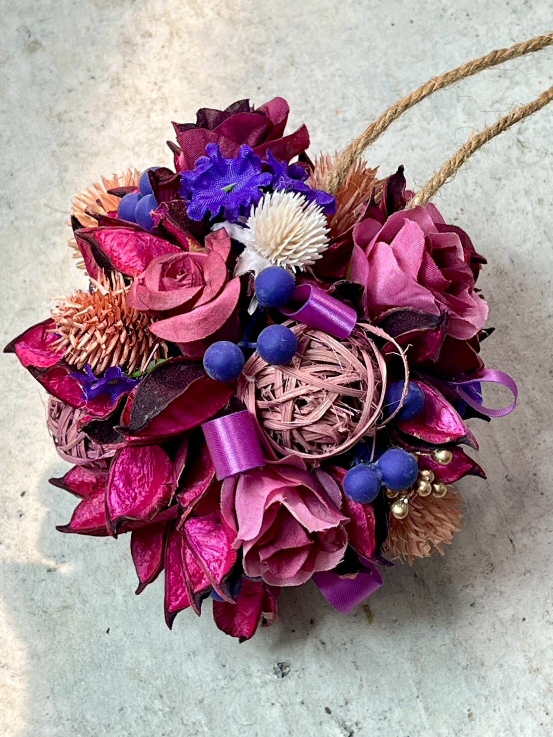 大人の女性を思わすパープルのグラデーションが美しい贅沢な壁掛けボールリースです。