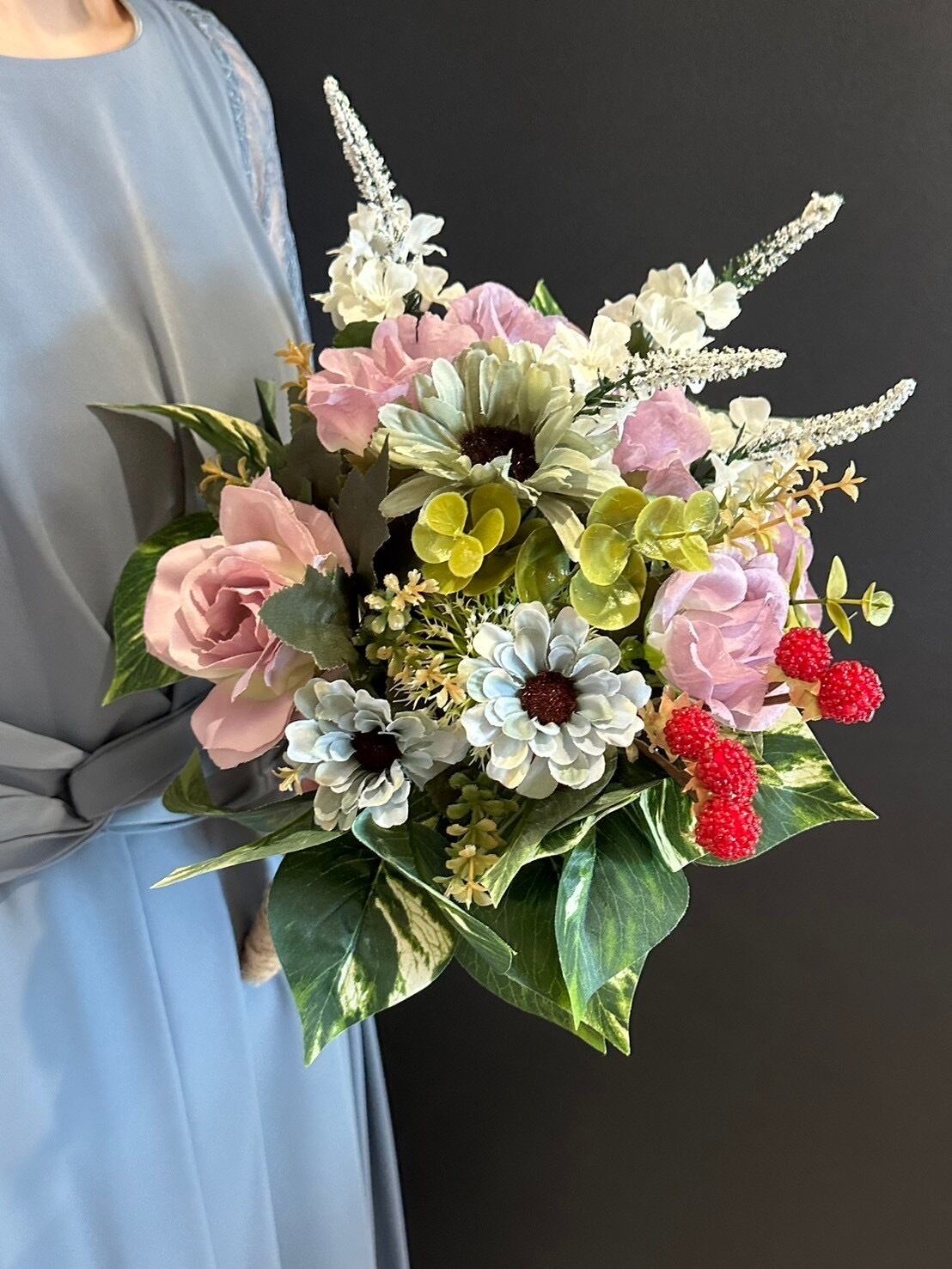 近くで見てもよりリアルなブーケに見えるよう、茎の部分をすべて麻紐で巻いております。